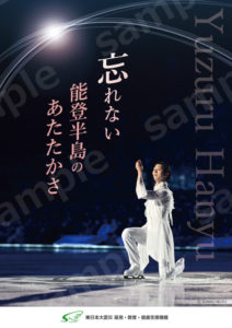 さて、使命と言えば羽生結弦さんです。能登災害支援においてもチャリティー演技会の開催を推進するなど、やはり他者とは全く異なる次元で支援活動を続けていらっしゃいます。被災地への思いを自らの活動において示し、成し遂げていくという点では、類まれなる才覚と推進力を持っていらっしゃいます。羽生さんの覚悟に深く敬意を表すとともに、感謝申し上げるばかりです。そして、能登の皆様を元気づけるとともに、少しでも多くの方々に能登への思いを持ってもらおうと、新たな復興支援ポスターを制作しモデルになってもらいました。東日本大震災発生の年から15年間ずっとその任を担っていただいておりますが、それはそのまま羽生さんの被災地への揺るぎない思いやりの心が込められていると拝察します。