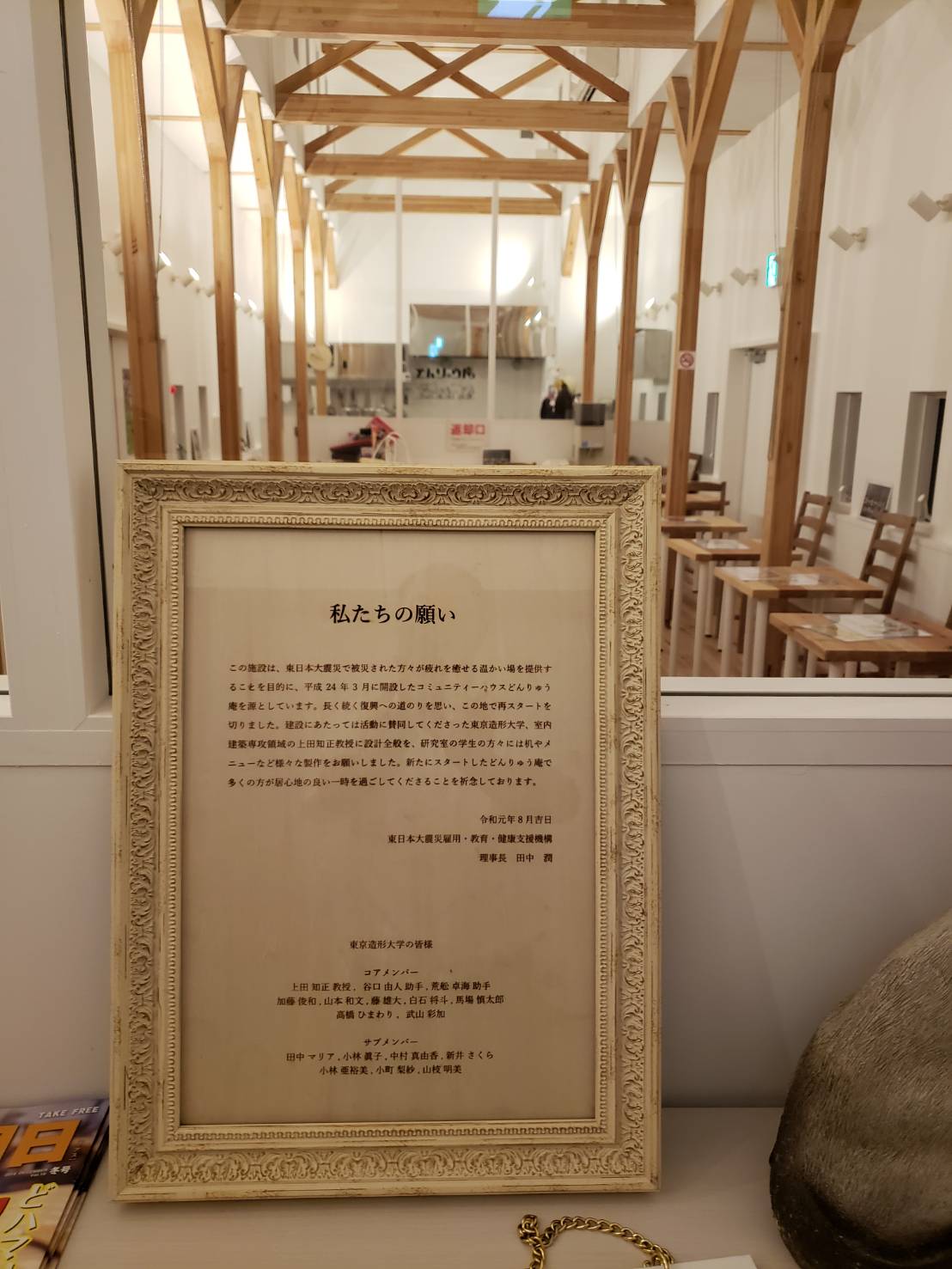 「私たちの願い」額縁(私たちの思いと東京造形大学の上田知正教授の研究室の学生さんたちのお名前を列記しています)