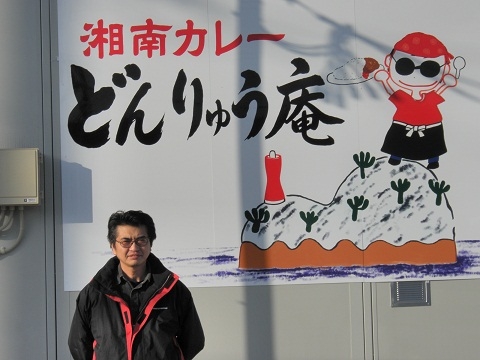 新しいどんりゅう庵の看板と植山竜太郎マスター(写真:下)です。