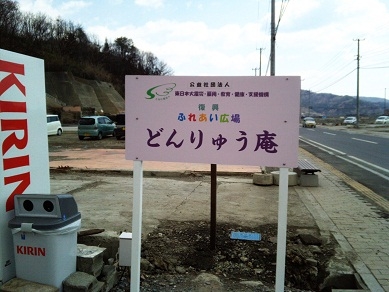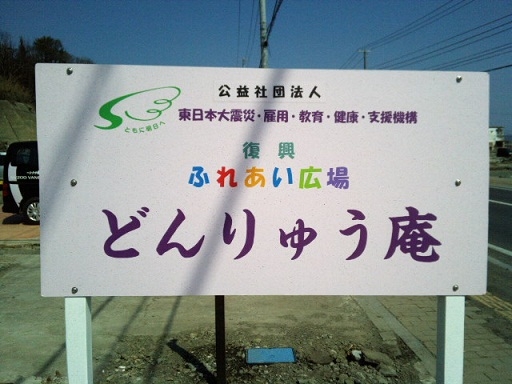 ふれあい広場「どんりゅう庵」の看板を設置しました。