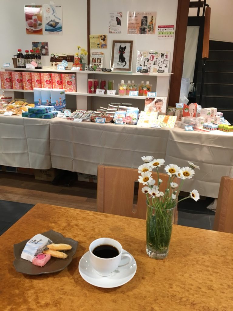 さらにカフェコ-ナ-には、小町通りカレ―、岡山産の玄米麺、やきもち、三陸産わかめの唐揚げなどの軽食メニュ-もございます。