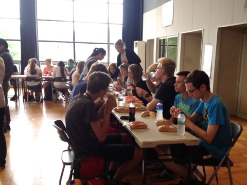 ドイツレムゴー市にあるエンゲルベルト・ケンペル・ギムナジウム(中高一貫校)の皆さんが大槌町に滞在。ランチにモーモーハウスのコッペパンを食べていただきました。