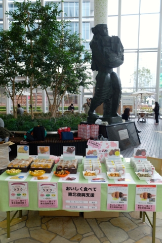 あいにくの雨のため、エントランスで「フレンチせんべい」と「モーモーラスク」を 18時まで販売しています。