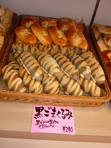 写真下:黒ごま入り生地のくるみパン 黒ごまくるみ