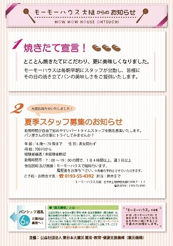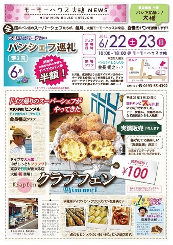 6月22日(土)23日(日)の2日間、大槌町、モーモーハウスで第3回パンシェフ巡礼が開催されます。