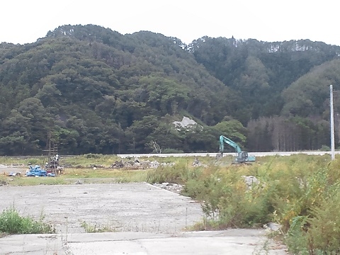 岩手県大槌町モーモーハウスの向かいの空き地を工事車両が整備しています。