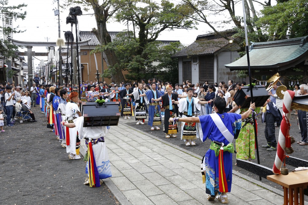 毎年9月14・15日に開催される正院町正院の秋祭り。祭りの名物は15日午後に行われる「奴振り」で、色とりどりのドテラ姿に鈴を付け化粧前掛けをした若者たちが、威勢のよい掛け声とともに「シャンガ」と呼ばれる毛槍を振り渡しながら町中を練り歩く。一斉にシャンガを相手に放り渡す所作など、勇敢にして機能美あふれる道中絵巻である。