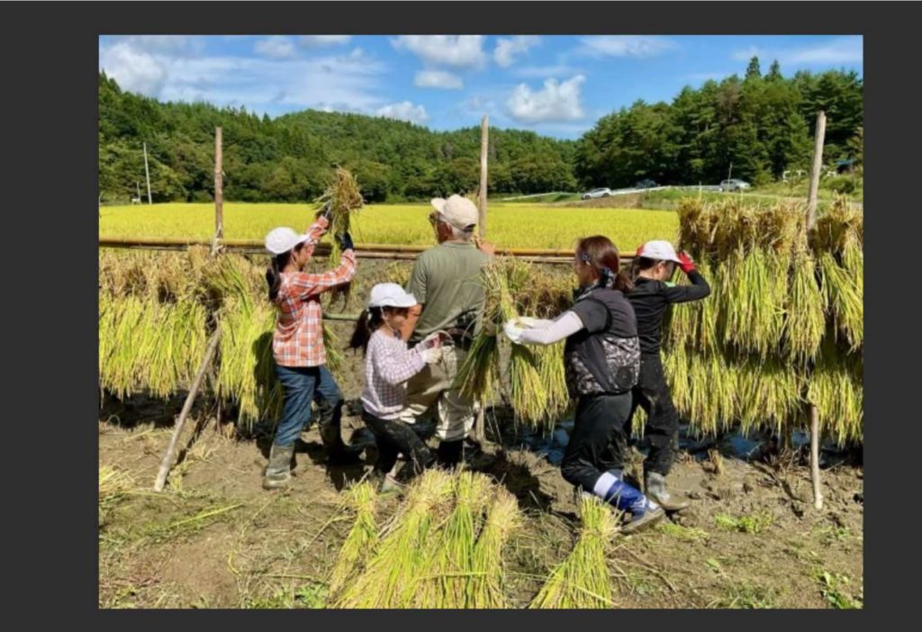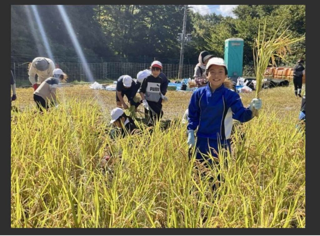 今年は飯舘村のオリジナル品種「あぶくまもち」を収穫しました。収穫の喜びを味わうため、何らかの形で子どもたちに還元できるようにしていきます。」(学校日記より)