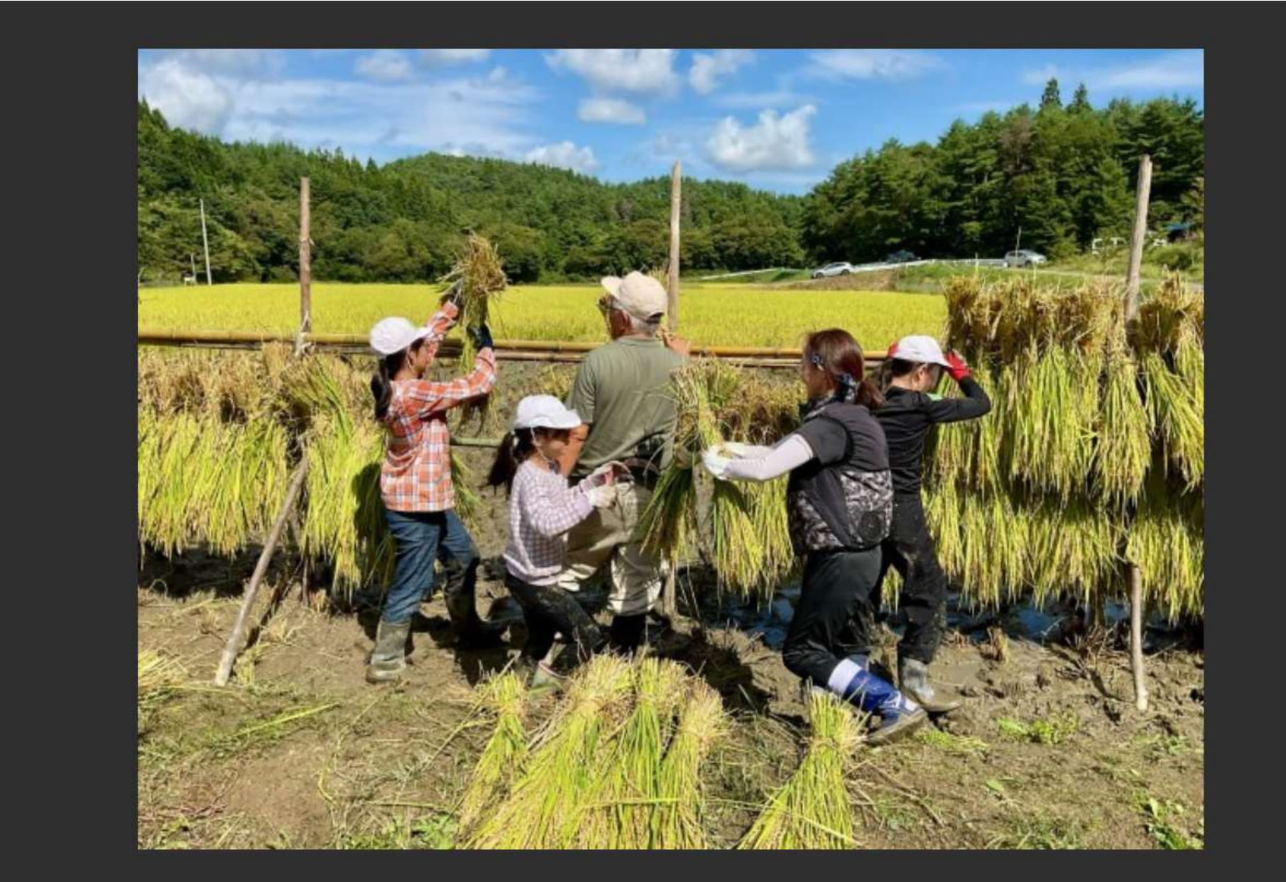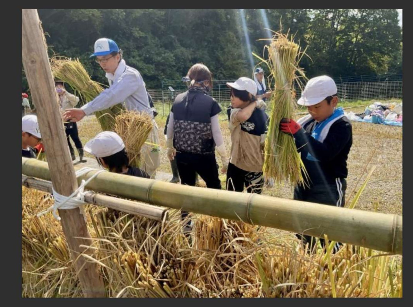 「澄み渡るような青空の下、子どもたちの歓声が田んぼに響き渡りました。