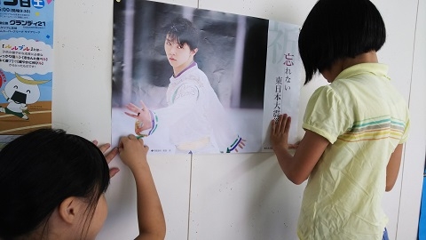 宮城県の塩竈市教育委員会様の塩竈市立 杉の入小学校様が、羽生選手の復興支援ポスターを掲示して下さいました。