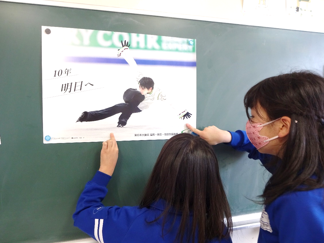 震災機構は、東日本大震災復興支援活動の一つとして、被災3県の全ての公立小学校に羽生結弦選手の復興支援ポスターの無料頒布を行い、震災の記憶のない被災地の小学生に、今進みつつある復興の現場で過ごす中で明日に向かって、お互いを積極的に助け合う熱き心を紡いでもらうための一助として、被災3県の小学校への掲示を推進しています。