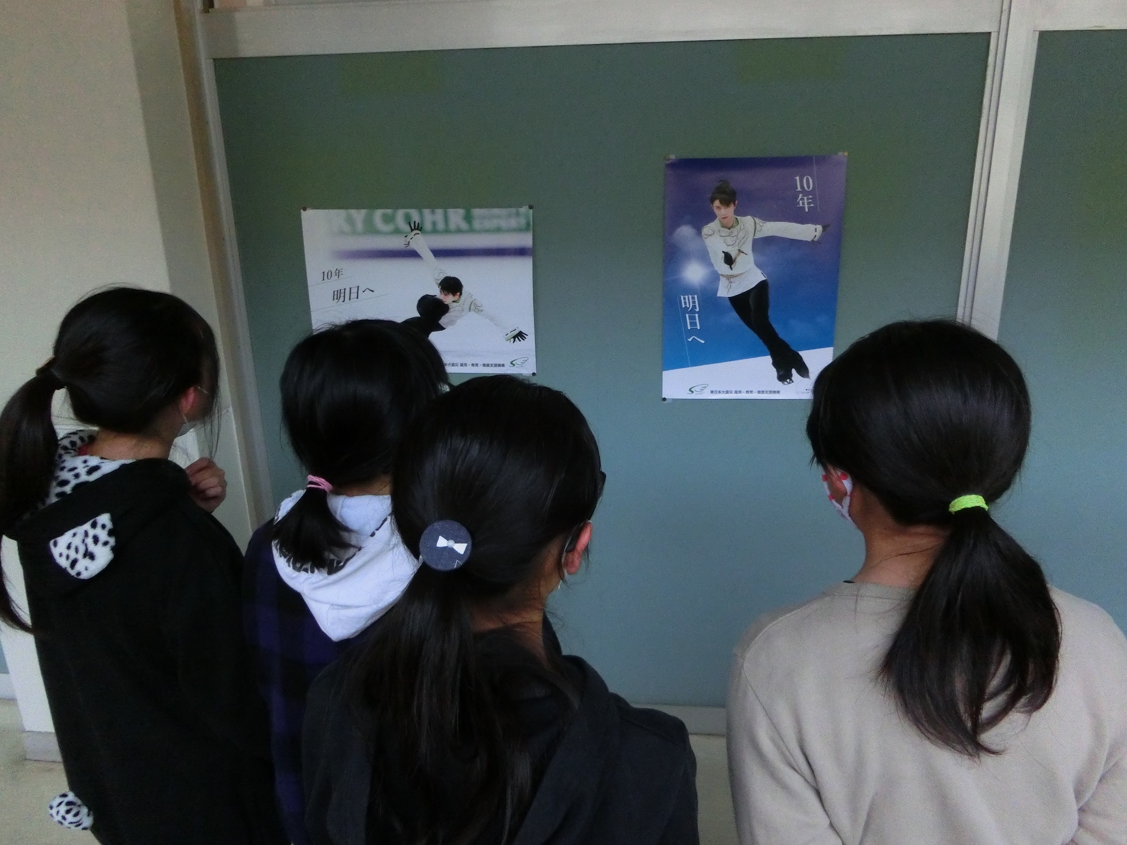 震災機構は、東日本大震災復興支援活動の一つとして、東北の被災3県の全ての公立小学校に羽生結弦選手の復興支援ポスターの無料頒布を行っています。このたび福島県の郡山市立安積第三小学校様から掲示写真が届きました。