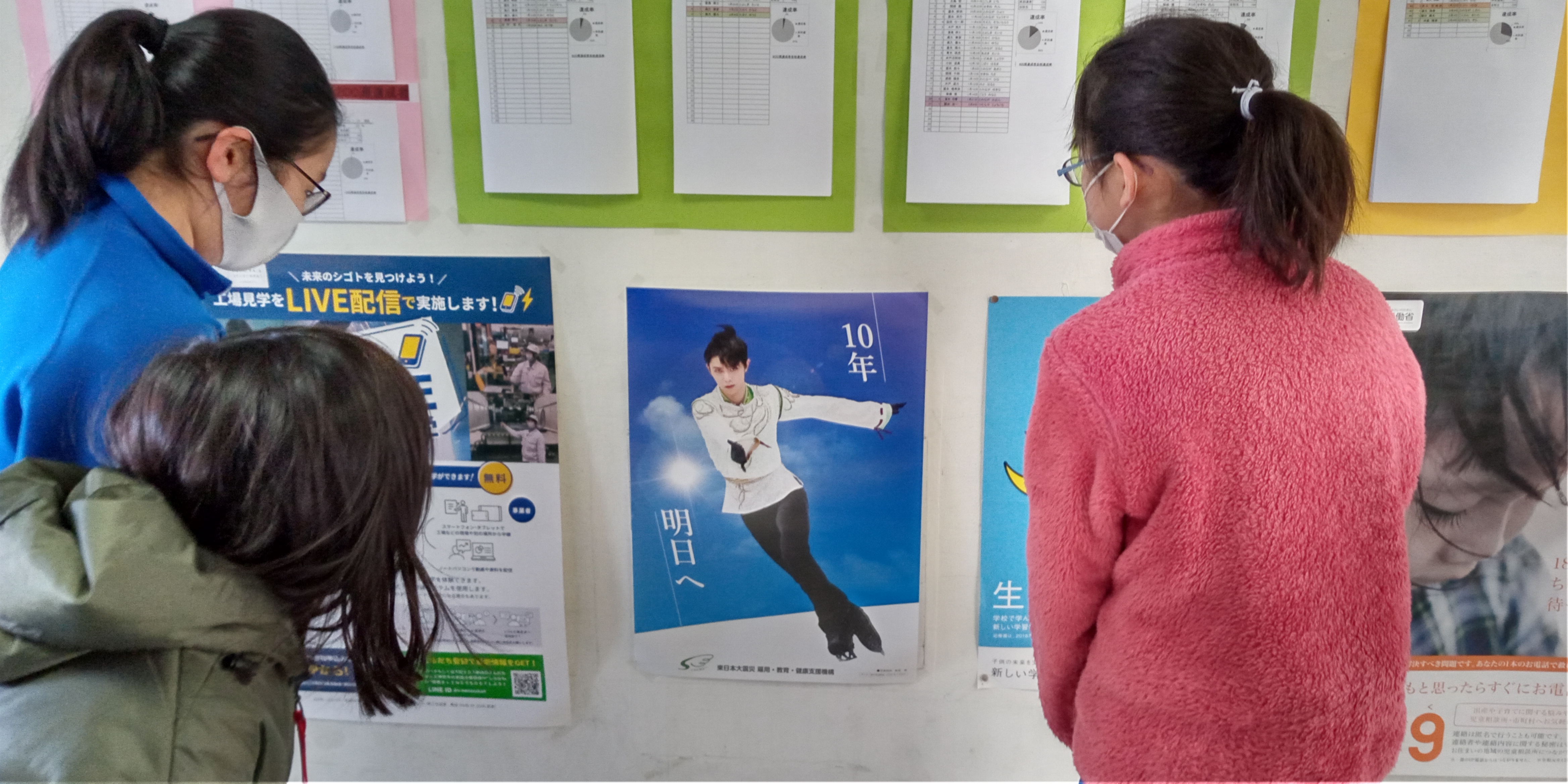 震災機構は、東日本大震災復興支援活動の一つとして、東北被災3県の全ての公立小学校に羽生結弦選手の復興支援ポスターの無料頒布を行い、震災の記憶のない被災地の小学生に、今進みつつある復興の現場で過ごす中で明日に向かって、お互いを積極的に助け合う熱き心を紡いでもらうための一助として、被災3県の小学校への掲示を推進しています。