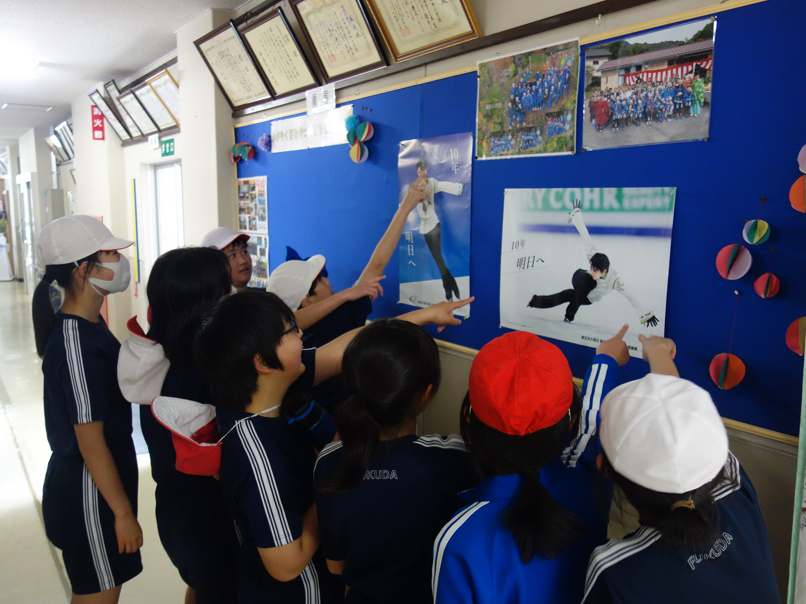 震災機構は、東日本大震災復興支援活動の一つとして、東北被災3県の全ての公立小学校に羽生結弦選手の復興支援ポスターの無料頒布を行い、震災の記憶のない被災地の小学生に、今進みつつある復興の現場で過ごす中で明日に向かって、お互いを積極的に助け合う熱き心を紡いでもらうための一助として、被災3県の小学校への掲示を推進しています。