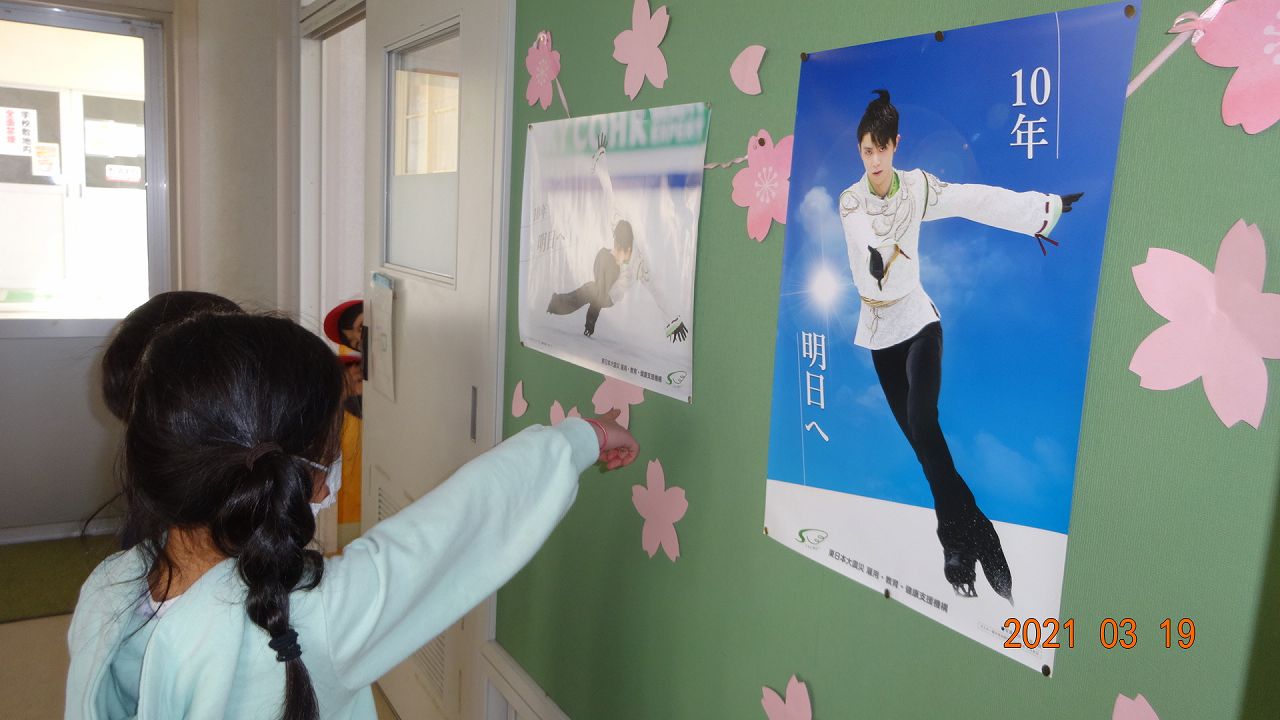 震災機構は、東日本大震災復興支援活動の一つとして、東北被災3県の全ての公立小学校に羽生結弦選手の復興支援ポスターの無料頒布を行い、震災の記憶のない被災地の小学生に、今進みつつある復興の現場で過ごす中で明日に向かって、お互いを積極的に助け合う熱き心を紡いでもらうための一助として、被災3県の小学校への掲示を推進しています。