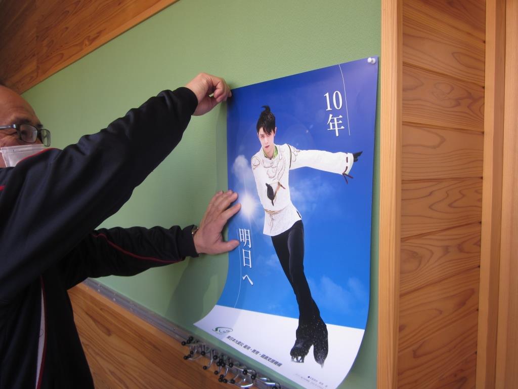 震災機構は、東日本大震災復興支援活動の一つとして、被災した東北3県の全ての公立小学校に羽生結弦選手の復興支援ポスターの無料頒布を行い、震災の記憶のない被災地の小学生に、今進みつつある復興の現場で過ごす中で明日に向かって、お互いを積極的に助け合う熱き心を紡いでもらうための一助として、被災3県の小学校への掲示を推進しています。