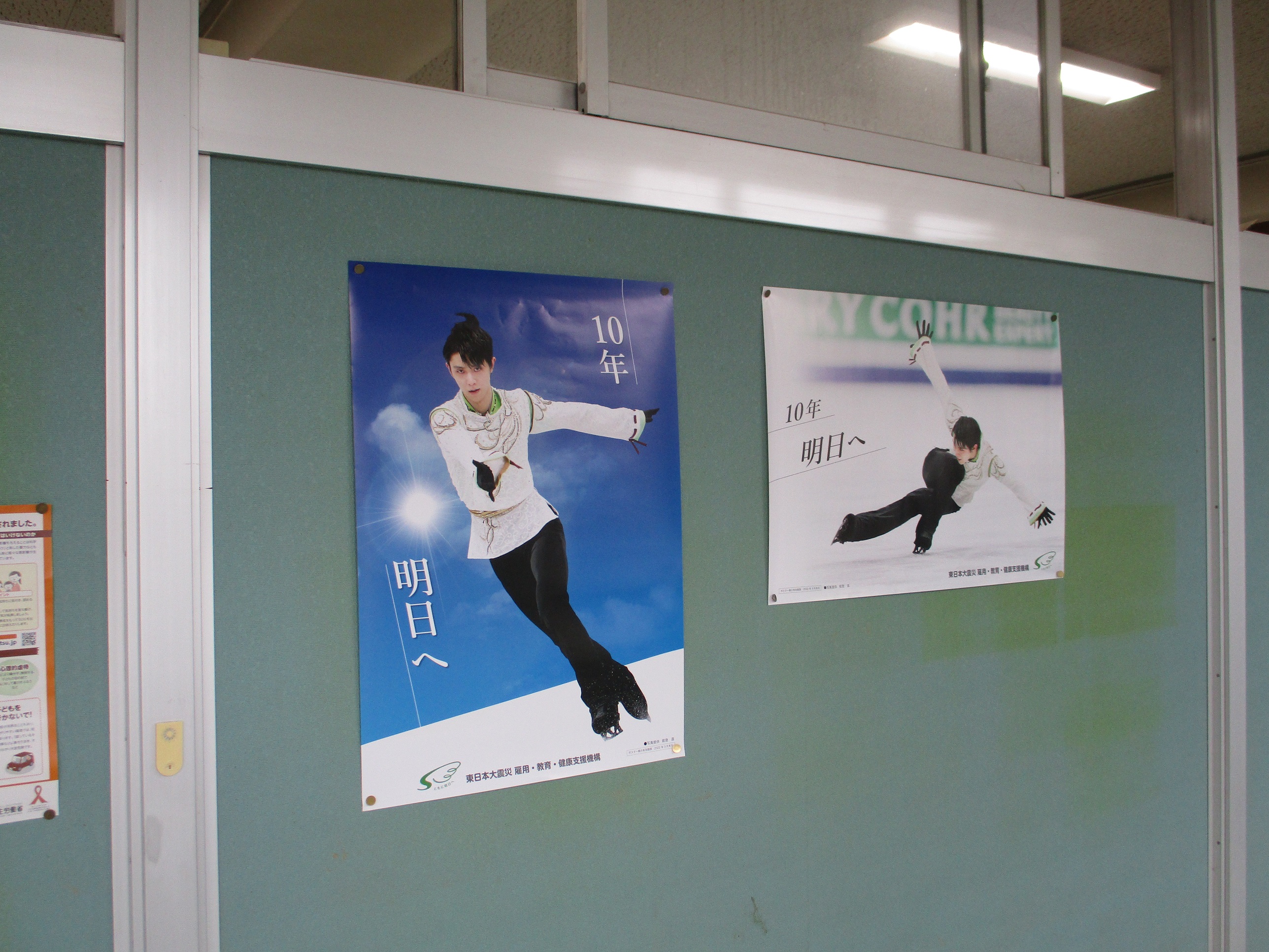 震災機構は、東日本大震災復興支援活動の一つとして、被災した東北3県の全ての公立小学校に羽生結弦選手の復興支援ポスターの無料頒布を行い、震災の記憶のない被災地の小学生に、明日に向かって、お互いを助け合う熱き心を紡いでもらうための一助として、被災3県の小学校への掲示を推進しています。