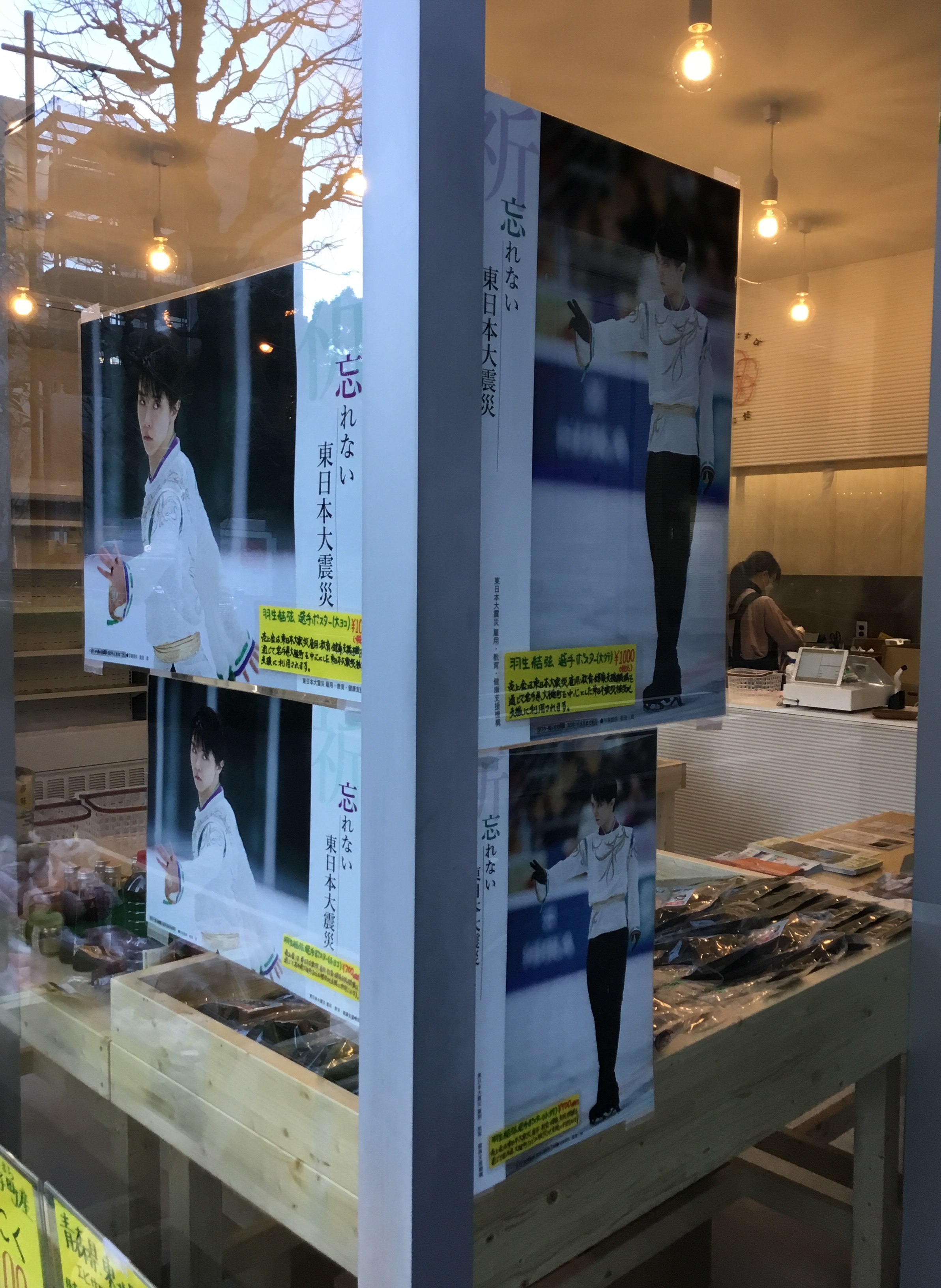「えんむすび ちよだ」では、千代田区と連携都市でもある岩手県大槌町の海産加工品を始め、福島県、山形県や青森県などの新鮮な野菜、果物や各種の食品のほか、羽生結弦選手の復興支援ポスターの販売も行っています。