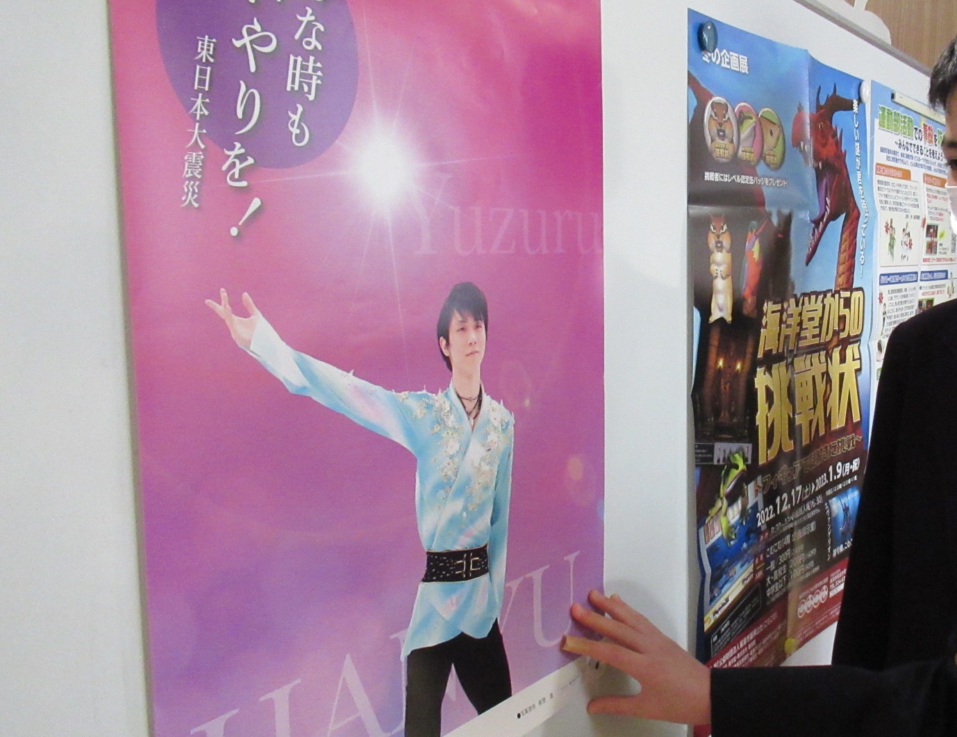 震災機構は、昨年に引き続き東日本大震災で甚大な被害を受けた岩手、宮城、福島3県の全ての小学校に、教育委員会を通じて、羽生結弦選手の復興支援ポスターの無料頒布を行っています。