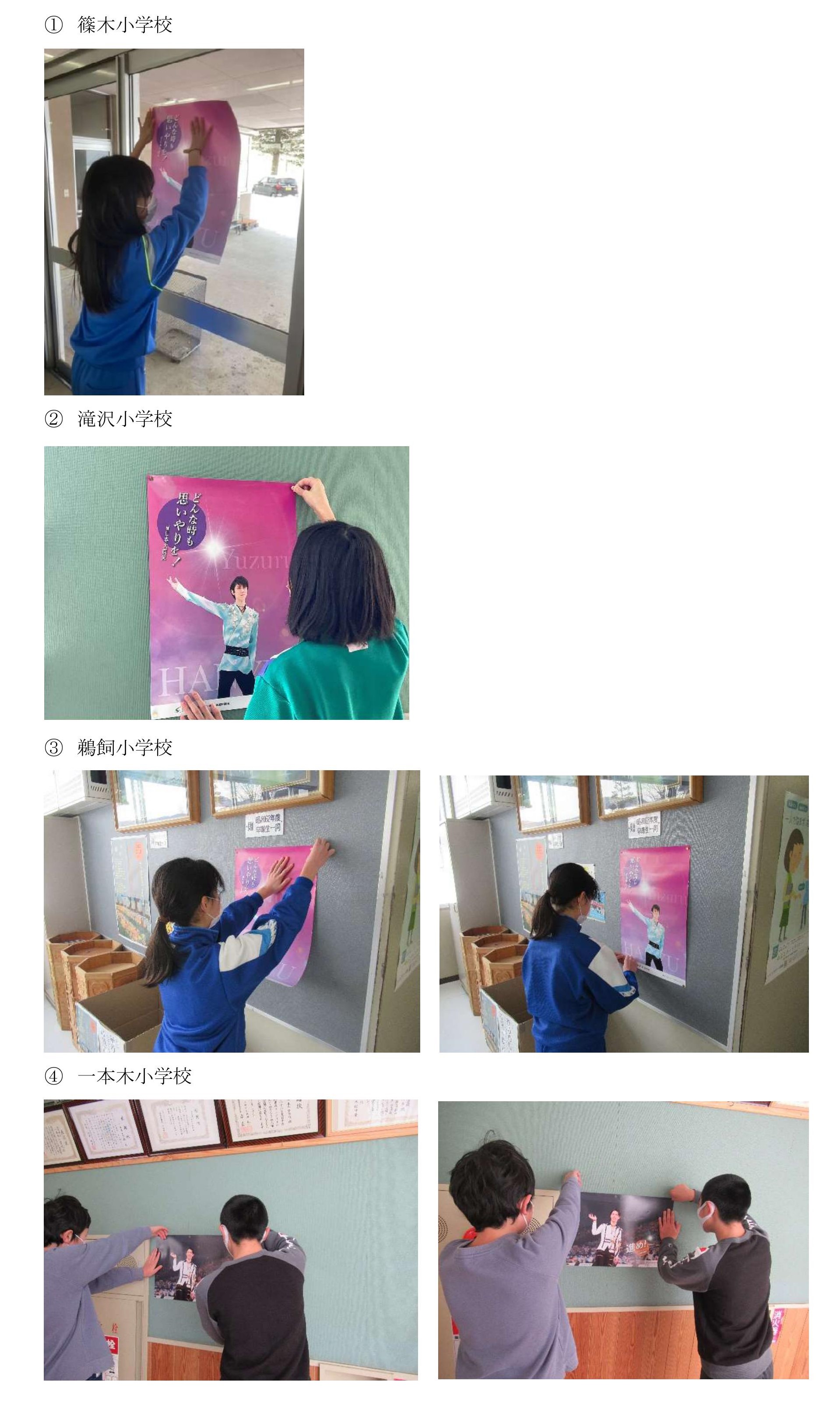 震災機構は、昨年に引き続き東日本大震災で甚大な被害を受けた岩手、宮城、福島3県の全ての小学校に、教育委員会を通じて、羽生結弦選手の復興支援ポスターの無料頒布を行っています。