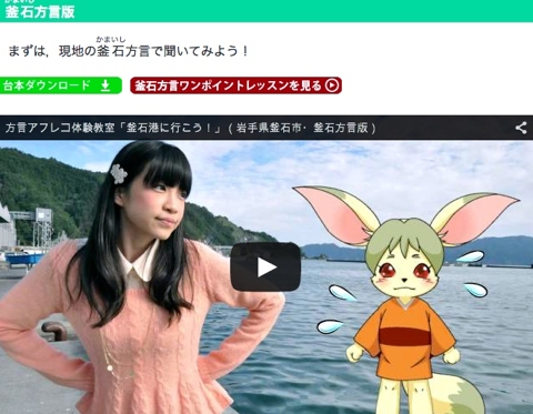 「方言アフレコ教室」は文化庁委託事業「被災地における方言の活性化支援事業」のひとつで、青森県八戸市、岩手県釜石市、宮城県仙台市を舞台にウェブ上で楽しく体験ができますよ。