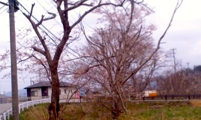 大槌に、桜の開花を見つけました。大槌町、柾内地区の入り口、ローソン付近です。
