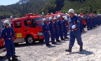 永年勤続の表彰や訓練の行われた後、復幸きらり商店街付近の土手で、河川から水を引き放水演習実践が行われました。放水された水もカラフルでとてもきれいでした。休日の午前中、久し振りに野外で風にあたり、気持ち良く時間を過ごしました。終了したのはお昼近く、11時30分頃でした。