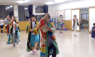 手踊り(小、中、高生と大人の約20名)は毎週月〜木の夜、地区内練習場で練習しています。山車も早急には製作することが困難な為、とりあえず軽トラに造花を飾り付け、随行する男衆の囃子で盛り上げながら、皆さんが元気になる様、当日は頑張ります。