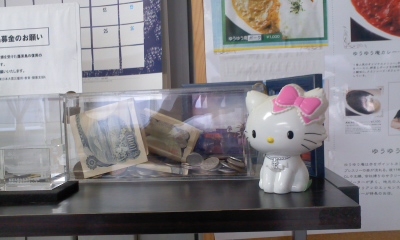 ○千葉県佐倉市から美容室「DEAR」の方がいらっしゃいました。、前々年よりどんりゅう庵をご利用いただいていて、この日もカレーを召し上がりながら、震災後4年半経過の事や、いろいろ話をしました。帰り際に「お店に設置している募金箱にたまった被災地への寄付金一年分です。」と募金箱ごと寄付してくださいました。さらに、当庵に設置の募金箱にも自ら寄付して頂きました。本当に有難く、感謝の気持ちでいっぱいです。