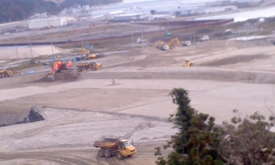 デリバリーの帰り、大槌町役場から城山に登り、町方地区の盛土風景を見てきました。場所によって2.8mとか4mと高さは違いますが、上から見ると一面ただただ広い更地に見えます。これから道路が出来、建物が建ち、緑が植えられ、公園ができることでしょう。公共施設やタウンコート等の都市計画は論じられていますが、住宅が何軒位戻ってこられるでしょうか?広大な平地の中、稼働してる重機の数は少なく、淋しく写ります。でも、これが今の大槌の現状です。