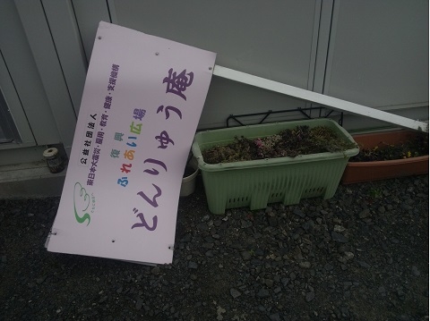 ○今朝、お店へ来てビックリ!どんりゅう庵の看板が、昨日の強風で土から抜け、道路を挟んだ向かいの東京大学交流プレースの方まで飛んで行ってしまい、スタッフの方が届けてくれました。交流プレースへの被害は特にありませんでしたが、トタンの看板はすっかり湾曲してしまいました。