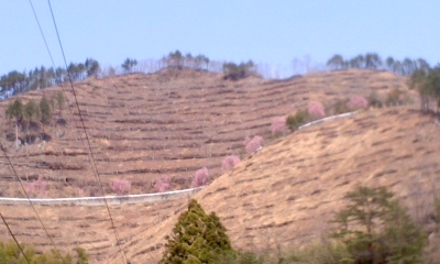 大槌町の桜木町住宅後方の山々にボランティア団体によって、桜の木が植樹されています。ソメイヨシノやしだれ桜が植えられ、山にあった他の木は伐採されたので、今年は開花が良く見られます。もう少し色づいたらさぞかしきれいな桜並木となることでしょう。ここは結構、町民の皆さんのウォーキングやドライブのコースになっています。