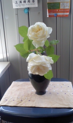 ○写真は、少し前になりますがどんりゅう庵店内に飾った白ばらです。とても大きく見事な花でした。