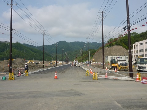 ○写真は元のどんりゅう庵があった場所から今のどんりゅう庵方面を見たところと小鎚川方面を見た、完成間近の県道です。