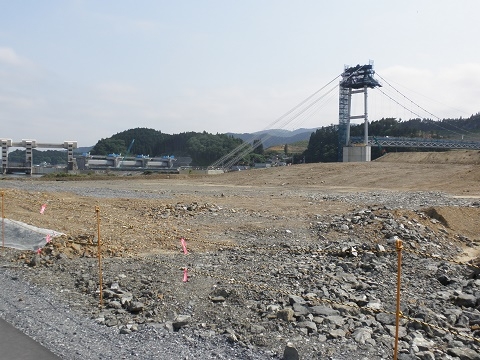 津波による甚大な被害を受けた陸前高田市では大規模な盛り土工事が行われています。市内の高田、今泉地区120ヘクタールで盛り土による宅地造成を行い、2018年度完成を目指しています。計画では平均7.4m、最大12mの盛り土の上に住宅や商業施設を建設することになっており、1100万㎥(東京ドーム9個分)の盛り土をするという今迄に無い大規模な土木工事となっています。