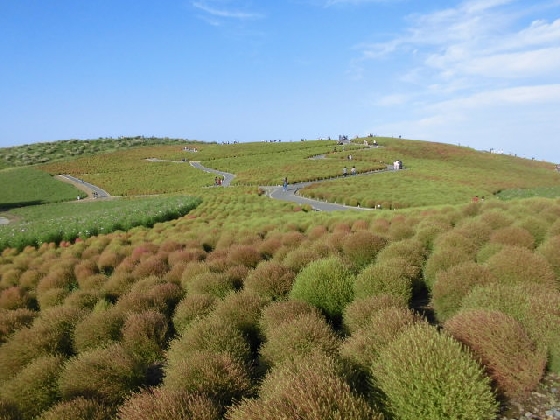 コキアが色づき始めた国営ひたち海浜公園の9月30日の様子です。