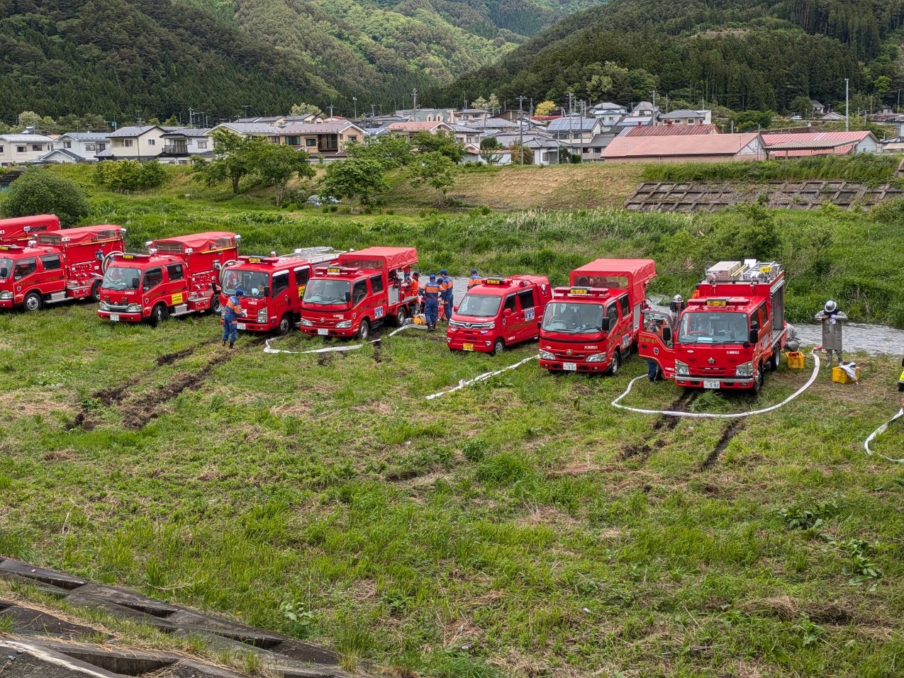 小雨の中、大槌町の源水河川敷(大槌川)において、令和7年度大槌町消防演習が行われました。非常勤で消防防災活動を行っている大槌町消防団は、明治28年に結成された「大槌町防災組」から始まった歴史ある消防団です。