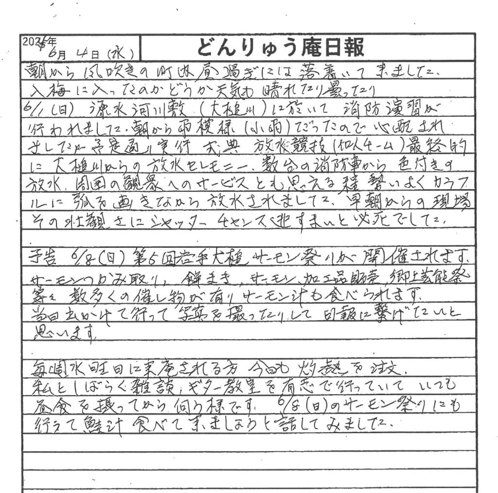今年の2月に、近隣の大船渡や陸前高田で立て続けに起こった山火事では、地元の消防団が民家を火災から守るのに大きな役割を果たしたことから、今回の消防演習は例年以上に気合を入れて行われたようです。その模様や第6回大槌サーモン祭りなどについて、震災機構のお嬢こと佐藤悦子相談役(岩手県大槌町在住)の現地報告です。
