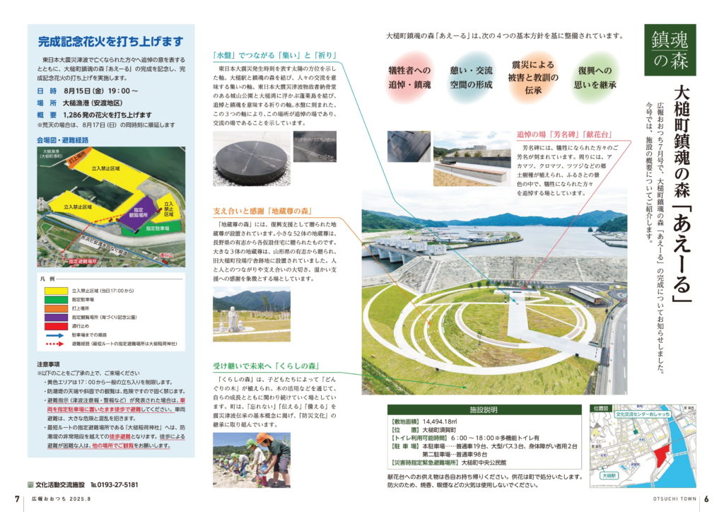 8月5日、大槌町須賀町に整備された東日本大震災の追悼施設「鎮魂の森あえーる」の完成式典が行われ多くの人たちが祈りをささげました。