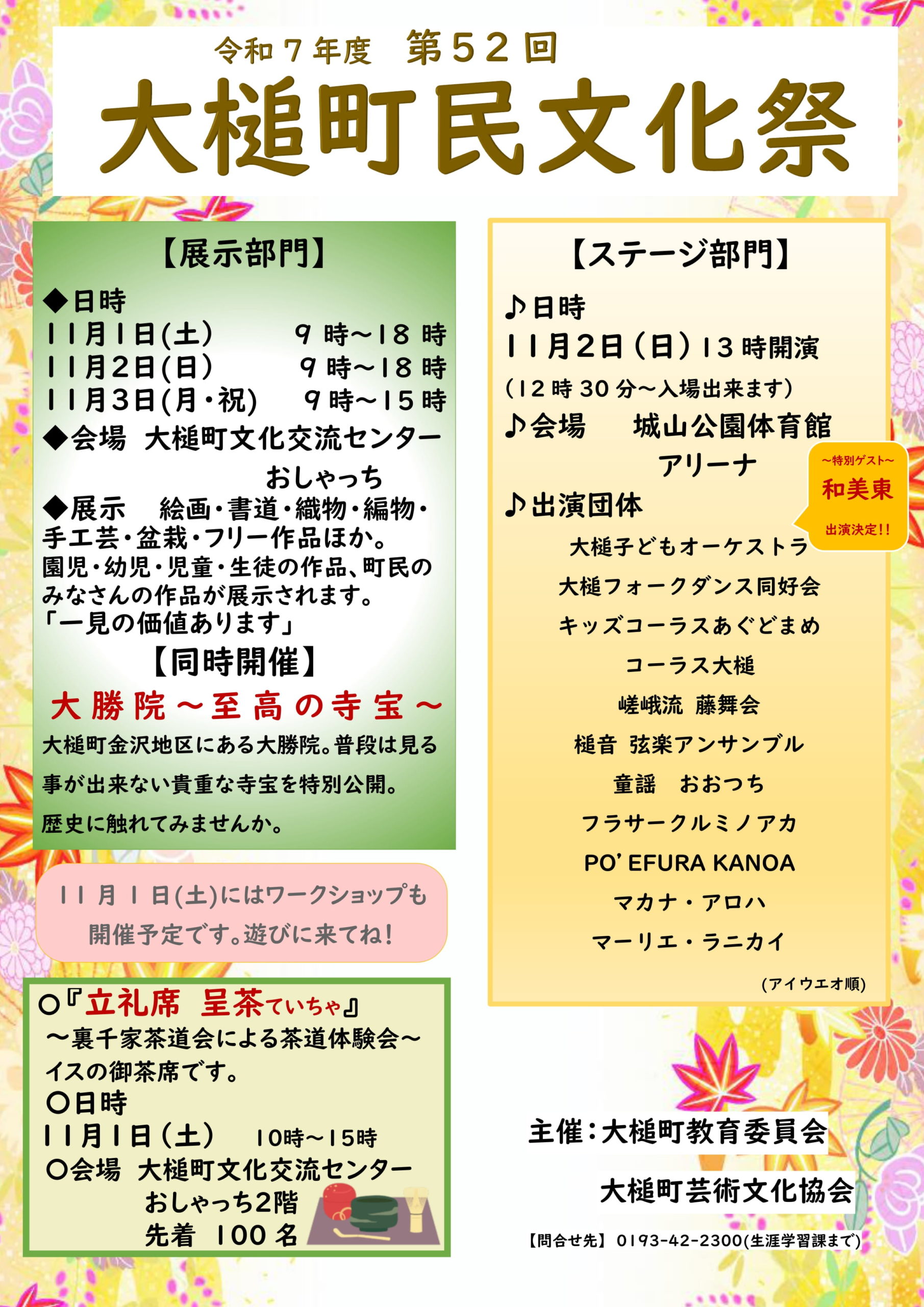 天高く青空が澄み渡る秋の日、岩手県大槌町にて恒例の「第52回大槌町民文化祭」(主催:大槌町教育委員会・大槌町芸術文化協会)が開催されました。
