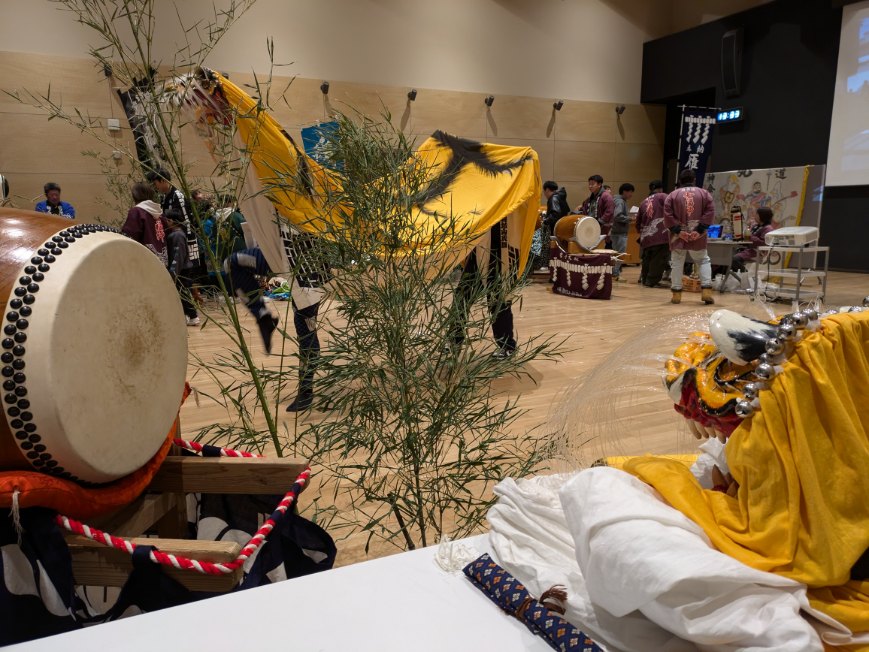 晴れたかと思うと雪が降り、止むと曇り空にと、はっきりしない天気の大槌町のおしゃっち(大槌町文化交流センター)において郷土芸能体験会が開催されました。地元の高校生が伝統文化を受け継ぐ様子や、町の新築現場や放牧が始まった羊の様子などを、震災機構相談役で、「お嬢」の愛称で親しまれている佐藤悦子さん(岩手県大槌町在住)が現地の状況を報告します。