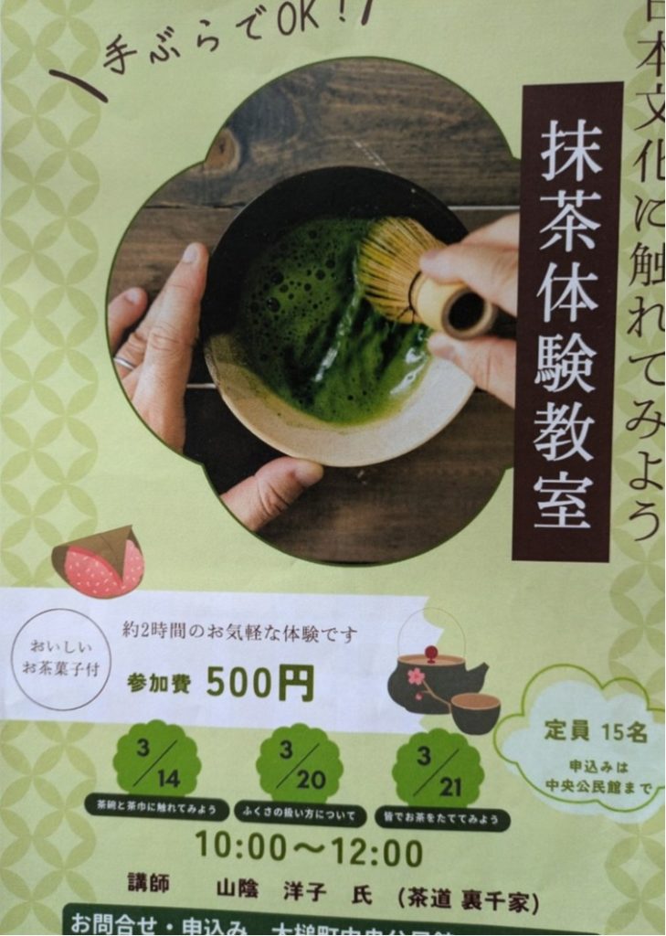 大槌町中央公民館において、茶道 裏千家 山陰洋子氏を講師に抹茶体験教室が開催されました。