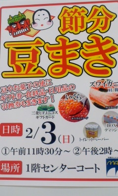 2019年2月5日 大槌町マスト内のどんりゅう庵スタッフからの報告です。2月3日節分の日に、マストのセンターコートで豆まきが行われました。普段閑散としているマスト内も、大槌にこんなにも人が居たのかと思う位あつまって、豆やふくろ菓子を拾い、各々袋いっぱいにしてました。 FacebookXCopy