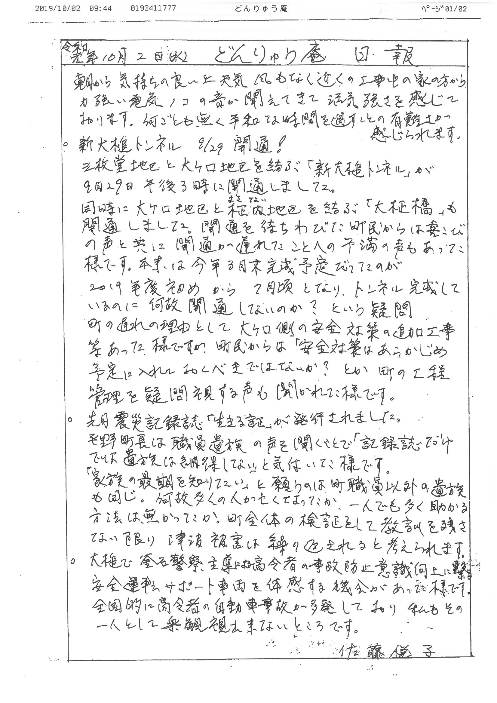 お嬢(佐藤悦子 弊機構特別顧問 大槌在住)の大槌便りです。