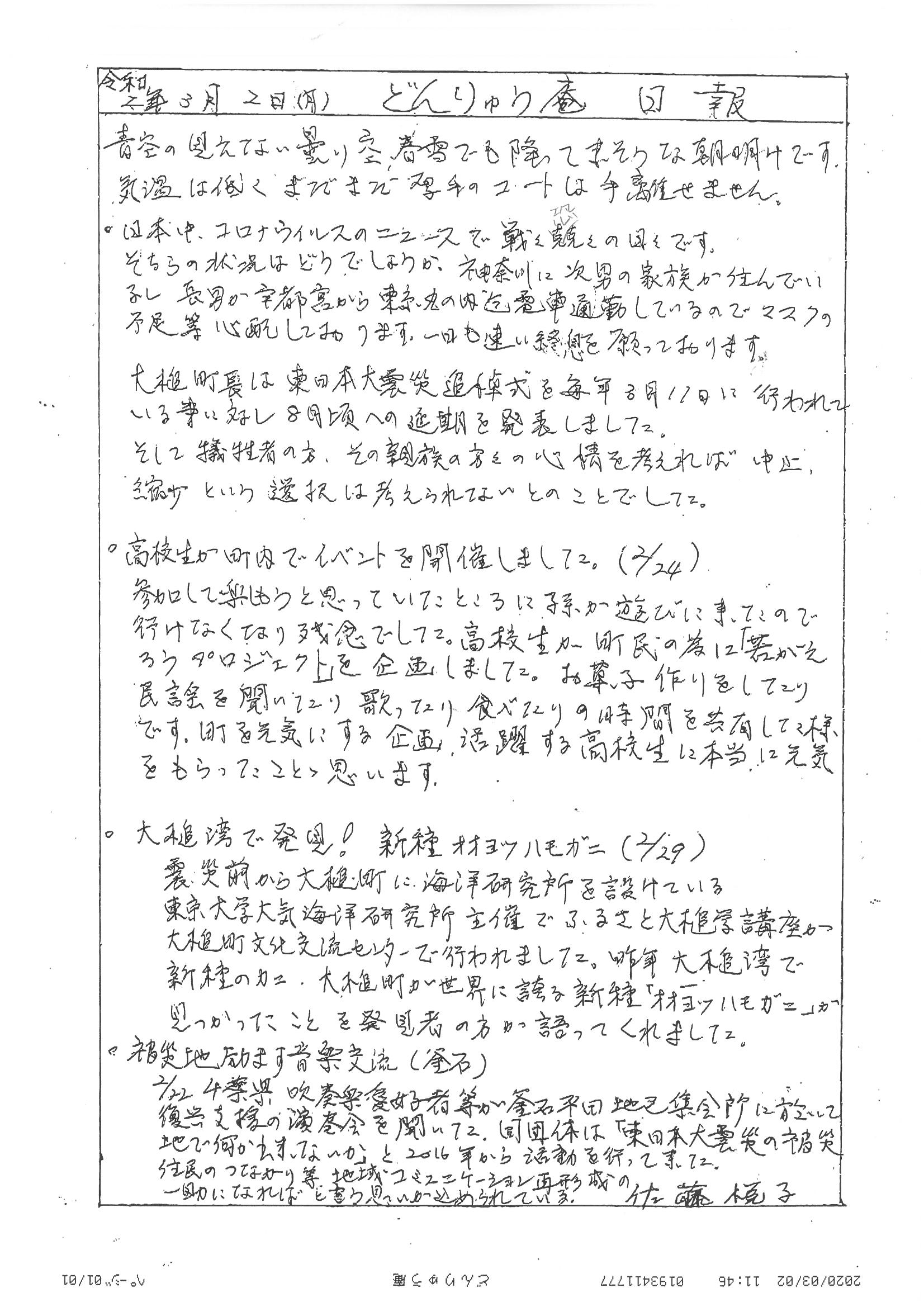 お嬢こと佐藤悦子震災機構特別顧問(岩手県大槌町在住)から大槌便りが届きました。