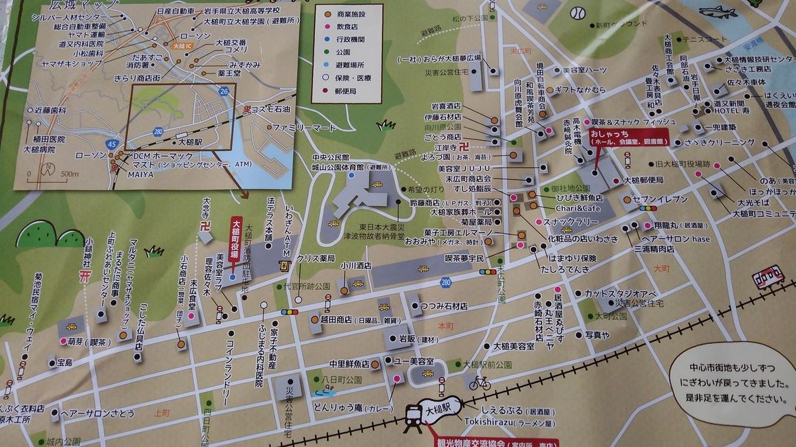大槌市街地地図 真ん中下部に「どんりゅう庵(カレー)」が見えます!