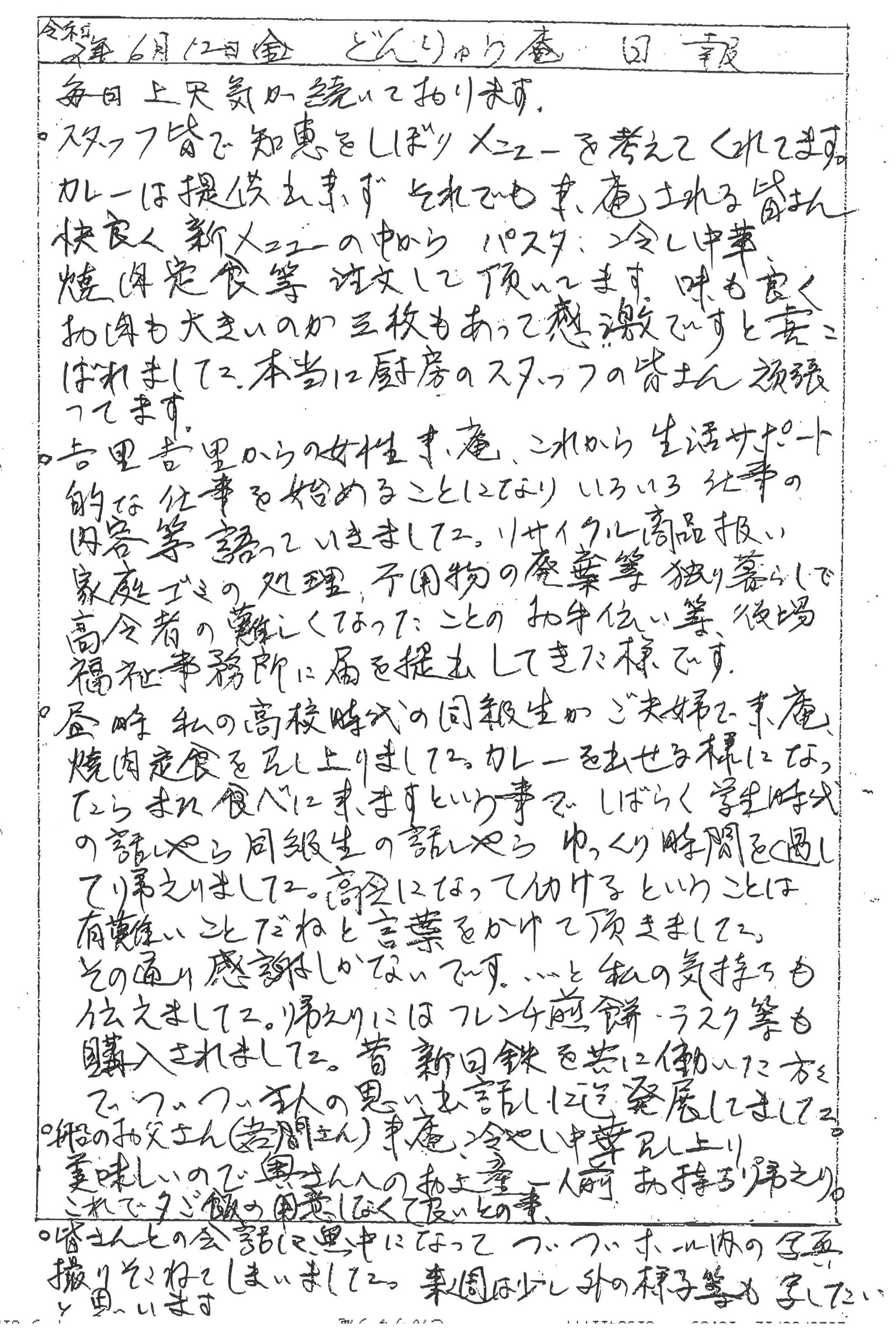 震災機構直営のコミュニティハウス「どんりゅう庵」には、毎日大勢のお客様が来られます。震災機構のお嬢こと佐藤悦子特別顧問(岩手県大槌町在住)がその模様をレポートします。