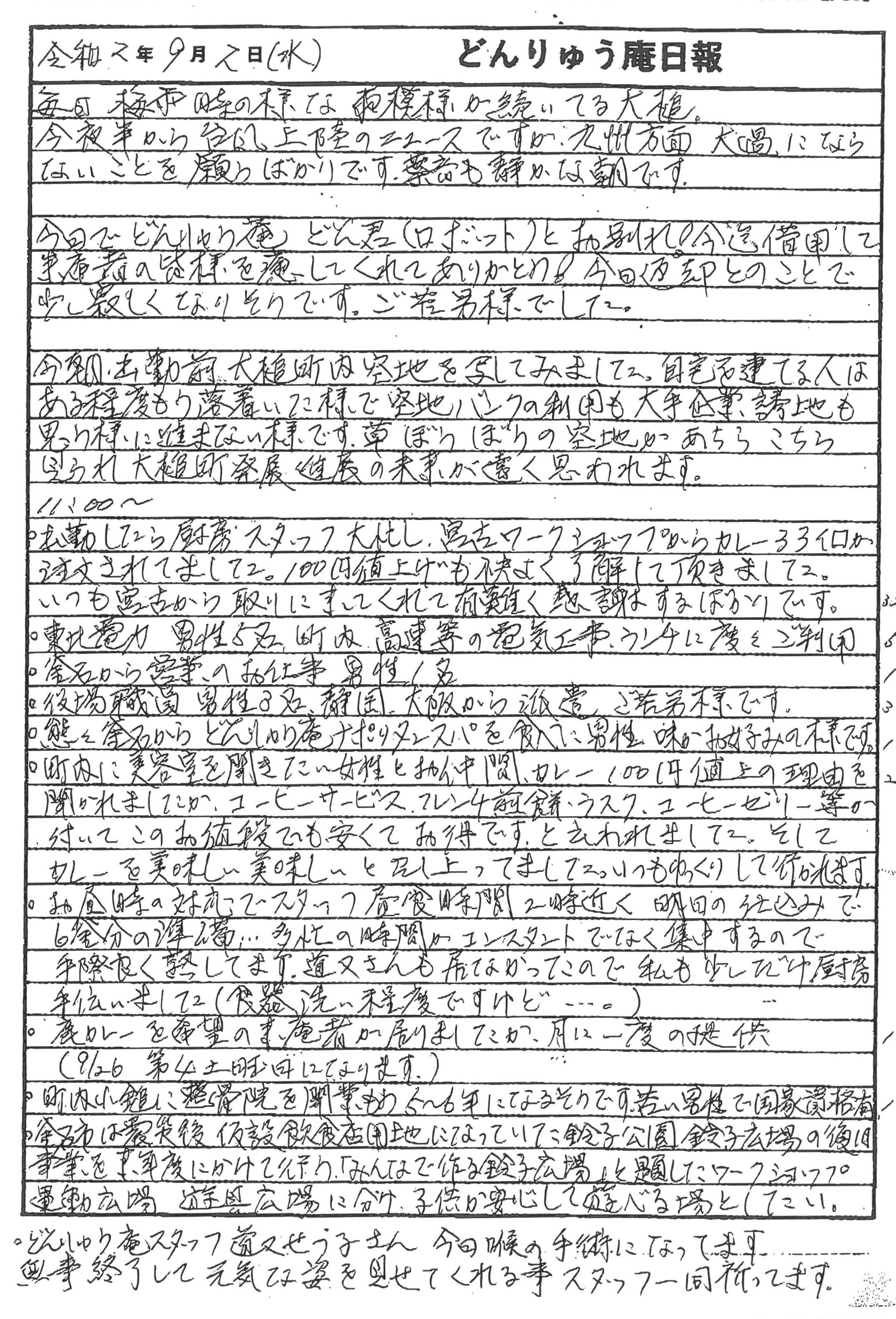 今年5月以来人気を集めたどんりゅう庵どん君ロボットとのお別れ、大槌町内の空地バンク利用状況、釜石市の鈴子公園鈴子広場の復興事業や震災機構直営のコミュニティハウス「どんりゅう庵」のお客様などについて、お嬢こと佐藤悦子特別顧問(岩手県大槌町在住)がレポートします.