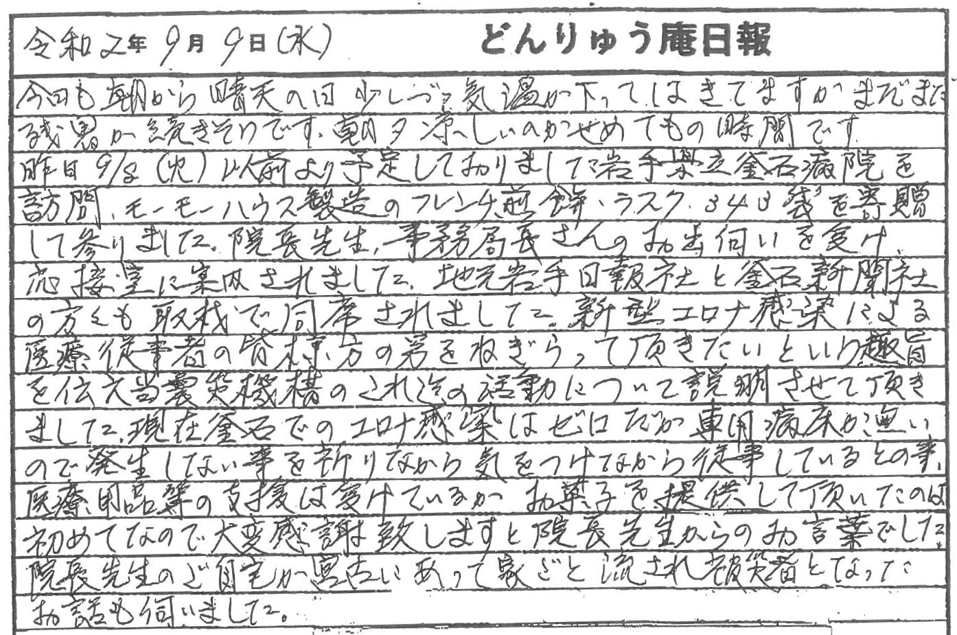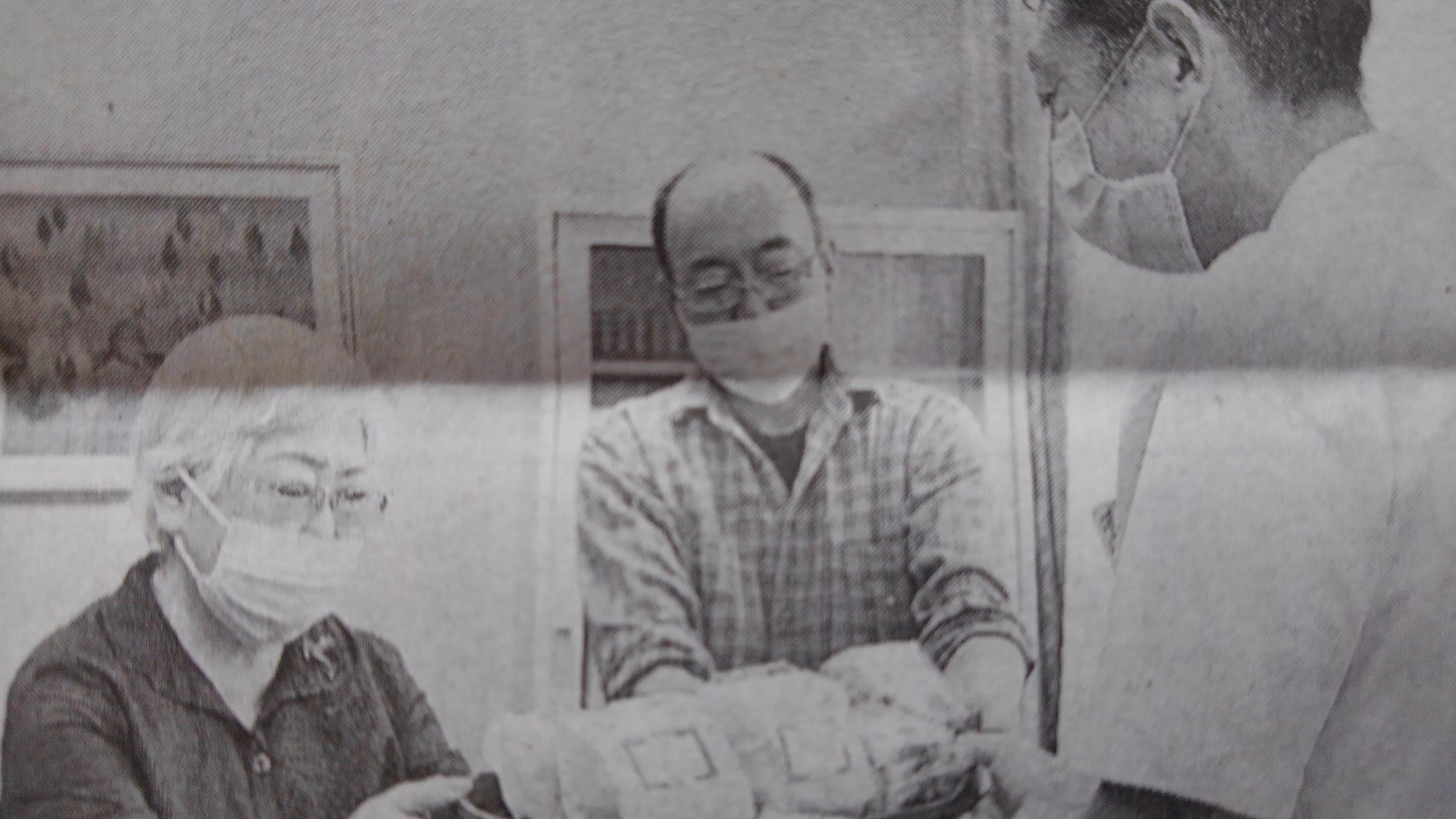 岩手日報朝刊(9月9日付)に掲載されたモーモーハウス菓子の寄附場面の写真