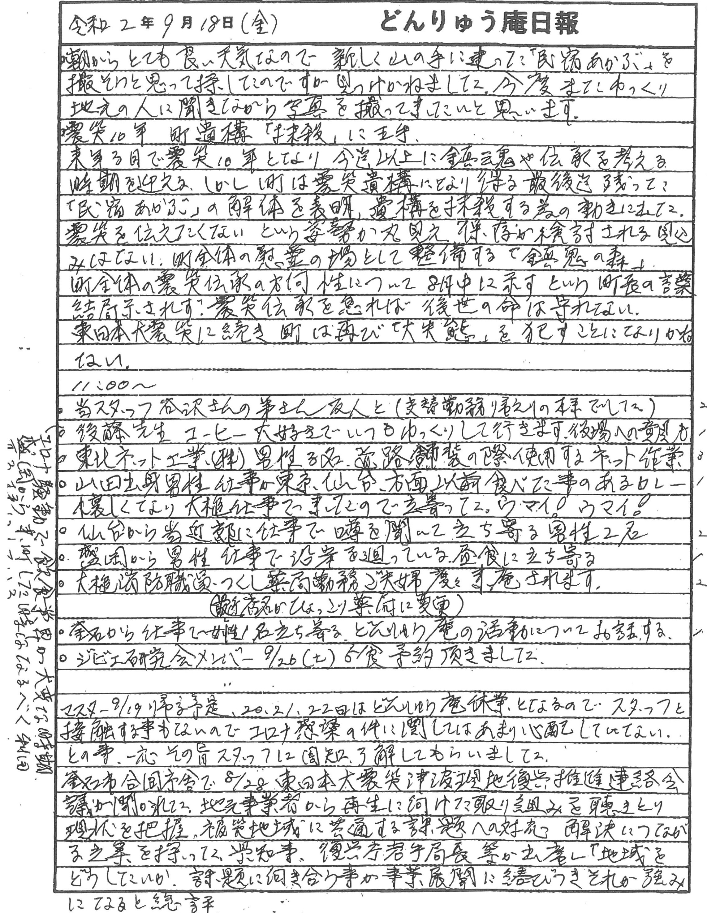 震災時に乗り上げた 観光船はまゆりが撤去され、解体予定の民宿あかぶや、釜石市での東日本大震災津波現地復興推進連絡会議や、コミュニティハウス「どんりゅう庵」のお客様などについて、お嬢こと佐藤悦子特別顧問(岩手県大槌町在住)がレポートします。
